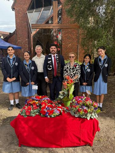 | Sue and Tom and Terry and Jemima visit Essie on Day 2 | Anzac Day at St Linus Church - local State Govt member Anthony Cianflone with Tim and Avril and the girls from Mercy College | |