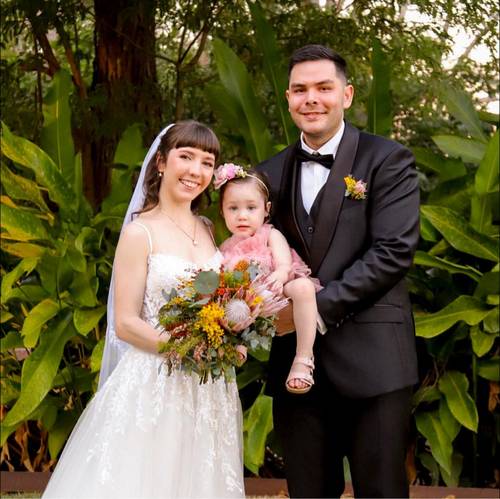 | Tom and Arianna tied the knot on 21st September 2025 in Darwin - pictured here with daughter Leona | The Darwin Ericksons - Diana, Arianna, Tom, Nikki, Eric and Ruadh | |